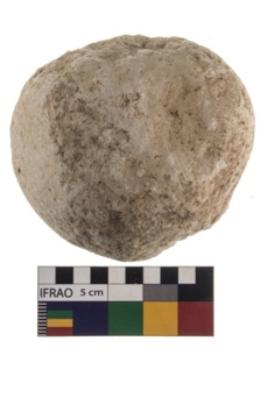| Description / विवरण | A partially broken specimen of roughly round shaped hammer stone with battered periphery along with the circumference. |