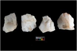 | Description / विवरण | There are n-4 of intact utilized flake cores made up of Quartz. Some of them have bulge of percussion and some are flat flakes. |