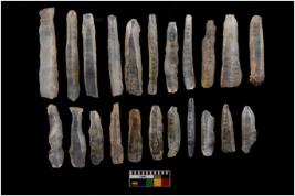| Description / विवरण | There are 22 number of microlithic blades of the material Chalcedony. All the blades are in intact condition. Some of the blades are re-touched. |