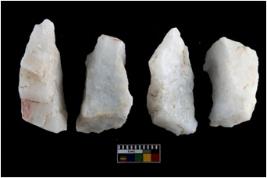 | Description / विवरण | There are n-4 of intact utilized flake cores made up of Quartz. Some of them have bulge of percussion and some are flat flakes. |