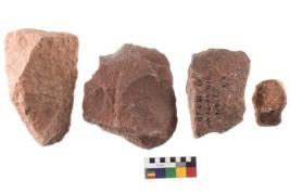 | Description / विवरण | A specimen of flake tool with prominent flaking marks. |
