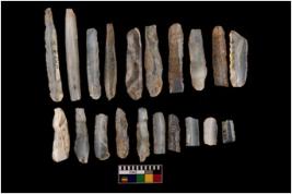 | Description / विवरण | There are 20 number of microlithic blades of which 19 are of the material Chalcedony and single specimen of banded agate. All the blades are in intact condition. Some of the blades are re-touched. |