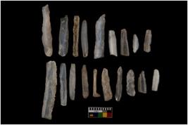 | Description / विवरण | 20 chalcedony blades with retouch all along on both sides. |