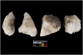 | Description / विवरण | There are n-4 of intact utilized flake cores made up of Quartz. Some of them have bulge of percussion and some are flat flakes. |