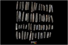 | Description / विवरण | 80 chalcedony blades and 1 quertz with retouch all along on both sides. |