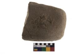 | Description / विवरण | A partially broken specimen of a oval shaped mueller stone with oval section. |
