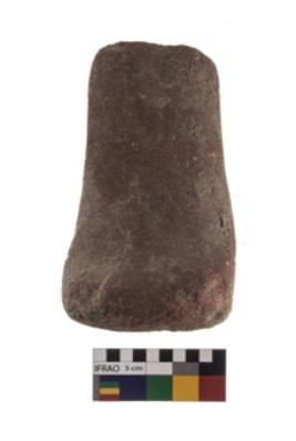 | Description / विवरण | A Partially broken specimen of a oval shaped pounder stone with battered surfaced and truncated end to hold the object. |