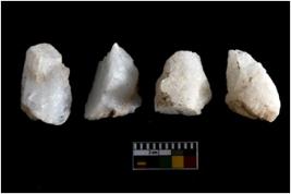 | Description / विवरण | There are n-4 of intact utilized flake cores made up of Quartz. Some of them have bulge of percussion and some are flat flakes. |