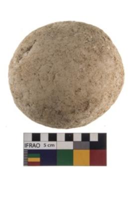 | Description / विवरण | A partially broken specimen of roughly round shaped hammer stone with battered periphery along with the circumference. |