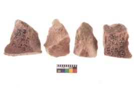 | Description / विवरण | Four worked utilised flakes. Many a times tapering and pointed at one end. |