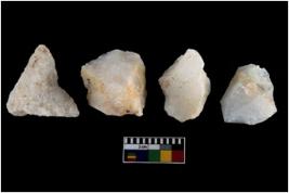 | Description / विवरण | There are n-4 of intact utilized flake cores made up of Quartz. Some of them have bulge of percussion and some are flat flakes. |