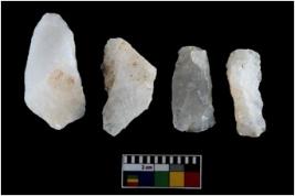 | Description / विवरण | There are n-4 of intact utilized flake cores made up of Quartz. Some of them have bulge of percussion and some are flat flakes. |