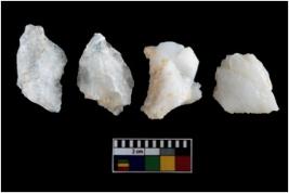 | Description / विवरण | There are n-4 of intact utilized flake cores made up of Quartz. Some of them have bulge of percussion and some are flat flakes. |