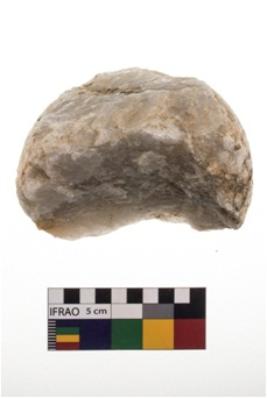 | Description / विवरण | A Hammer stone roughly rounded in shape with grounded edges. |
