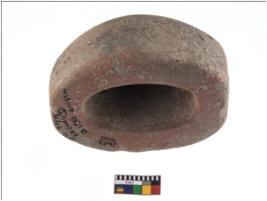 | Description / विवरण | A complete specimen of a terracotta head scratcher made of fine clay. It is cocave-based hemispherical shaped object which looks like a half lentil. Its base is slightly concave. It is hollow at the base and bear a small perforation at the apex. It is plain at the ridge. It is made of fine well-levigated clay, slipped reddish in colour. This speciemen is extremely well fired and smooth in texture. |