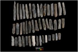 | Description / विवरण | 42 Chalcedony blades and 2 milky quartz blades which has retouched penknife,blunted back and used ,unused, rejuvenating Parallel sided flakes blades |