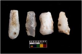 | Description / विवरण | There are 4 cores.Among them 2 have fully fluted cores,without any trace of crested ridge flakes and remaining 2 are small and flat cores with crested ridge flakes. |