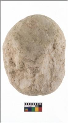 | Description / विवरण | A partially broken specimen of roughly round shaped hammerstone with battered periphery along with the circumference. Its shape is rather uneven than round. It is broken from both the ends It is made up of quartz. |