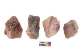 | Description / विवरण | Four worked utilised flakes. Many a times tapering and pointed at one end. |