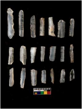 | Description / विवरण | 20 Chalcedony blades which has retouched penknife,blunted back and used ,unused, rejuvenating Parallel sided flakes blades and serrated blades. |