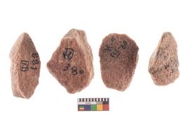 | Description / विवरण | Four worked utilised flakes. Many a times tapering and pointed at one end. |