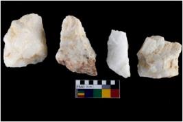 | Description / विवरण | There are n-4 of intact utilized flake cores made up of Quartz. Some of them have bulge of percussion and some are flat flakes. |