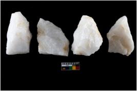 | Description / विवरण | There are n-4 of intact utilized flake cores made up of Quartz. Some of them have bulge of percussion and some are flat flakes. |
