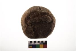 | Description / विवरण | The object is Hammerstone of material Sandstone. It is some what flat, tablet-shaped with battered periphery. |