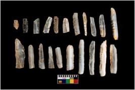 | Description / विवरण | 21 Chalcedony blades and 1 agait which has retouched penknife,blunted back and used ,unused, rejuvenating Parallel sided flakes blades. |