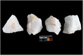 | Description / विवरण | There are n-4 of intact utilized flake cores made up of Quartz. Some of them have bulge of percussion and some are flat flakes. |