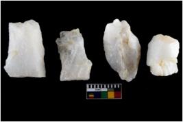 | Description / विवरण | There are n-4 of intact utilized flake cores made up of Quartz. Some of them have bulge of percussion and some are flat flakes. |