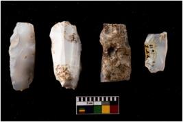 | Description / विवरण | There are 4 cores.Among them 2 are burins have fully fluted cores,without any trace of crested ridge flakes.remaining 1 are crescent having small and flat cores with crested ridge flakes.and another 1 is points having small ridge flakes |