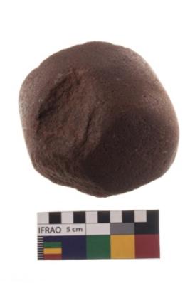 | Description / विवरण | The object is Hammerstone of material Sandstone. It is Irregularly circular in shape with battered periphery. It is broken in condition |