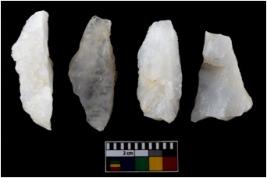 | Description / विवरण | There are n-4 of intact utilized flake cores made up of Quartz. Some of them have bulge of percussion and some are flat flakes. |