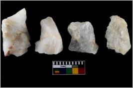 | Description / विवरण | There are n-4 of intact utilized flake cores made up of Quartz. Some of them have bulge of percussion and some are flat flakes. |