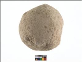 | Description / विवरण | A partially broken specimen of spherical shaped hammerstone with battered periphery along with the circumference. Its shape is a nearly sphere with minimal scratches and pits.. It is broken from one of ends. It is made up of quartz. |