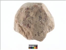 | Description / विवरण | A partially broken specimen of spherical shaped hammerstone with battered periphery along with the circumference. Its shape is a nearly sphere with minimal scratches and pits.. It is having one flat end. It is made up of quartz. |