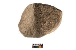 | Description / विवरण | A partially broken specimen of a saddle quern . It is Irragullar in shape , was used for girnding various substances. |