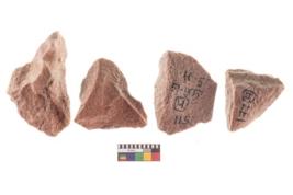 | Description / विवरण | Four worked utilised flakes. Many a times tapering and pointed at one end. |