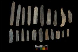 | Description / विवरण | 21 Chalcedony blades which has retouched penknife,blunted back, unrested ridged and used ,unused, rejuvenating and blades. |