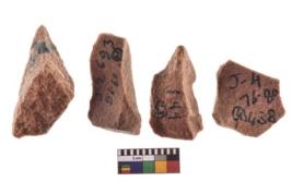 | Description / विवरण | Four worked utilised flakes. Many a times tapering and pointed at one end. |