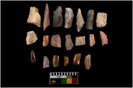 | Description / विवरण | There are 20 cherts ,out of which 7 are blades and others are debitage. There are re-touched blades, triangles,obliquely truncated blades and blunted back in it. |
