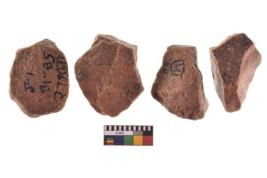 | Description / विवरण | Four worked utilised flakes. Many a times tapering and pointed at one end. |