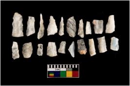 | Description / विवरण | Out of 20 quartz. There are 16 are blades and others are debitage. There are re-touched blades, triangles, points, crescent, obliquely truncated blades, trapezes and blunted back in it. |