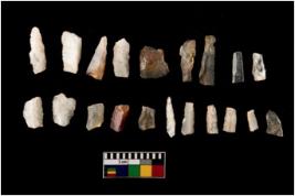 | Description / विवरण | There are 11 quartz and 9 chalcedony. Out of which 17 are blades and others are debitage. There are re-touched blades, triangles, points, crescent, obliquely truncated blades, trapezes and blunted back in it. |