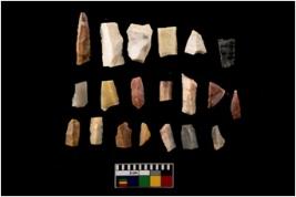| Description / विवरण | There are 3 cherts,out of which 16 are blades and others are debitage. There are re-touched blades, triangles,obliquely truncated blades and blunted back in it. |