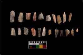 | Description / विवरण | There are 23 chert, out of which 14 are blades and rest are debitage. There are re-touched blades, triangles, blunted back, obliquely and truncated blades in it. |