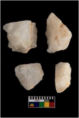 | Description / विवरण | There are n-4 of cores. All are made up of Quartz. All of them are intact fully fluted cores without any trace of crested ridge flakes. |