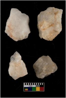 | Description / विवरण | There are n-4 of cores. All are made up of Quartz. All of them are intact fully fluted cores without any trace of crested ridge flakes. |