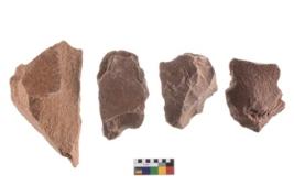 | Description / विवरण | Four worked utilised flakes, most of them bearing sharp edges. |